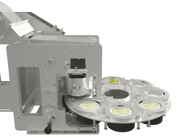 An air jet placed a few millimeters from the bottom of the container lifts and removes any foreign bodies, ensuring the purity and quality of the product being packaged.